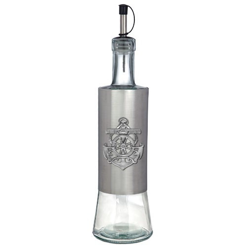 Dress up your table and kitchen with our stylish Stainless Steel Bottle with Pour Spout. Tall and elegant with easy-pour spouts. These stainless steel bottles are embellished with a finely crafted pewter logo. Handmade in the USA a perfect gift item! 20 oz. capacity *Suggested hand wash only