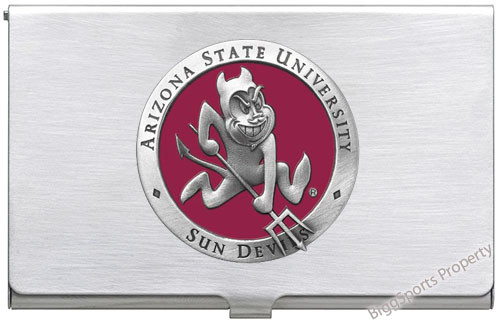 Carry your business cards with your favorite team's logo. This Arizona State Sun Devils Business Card Case (Set of 2) is officially licensed with a colored pewter logo. Makes a great gift!