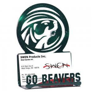 Business Card Holder is constructed out of 16 gauge steel. The entire holder is then painted with a high gloss sparkle powder coat Baked on Paint finish Size is approximately 3.5 inches wide and the height will vary depending on the design. Fits standard size business cards.