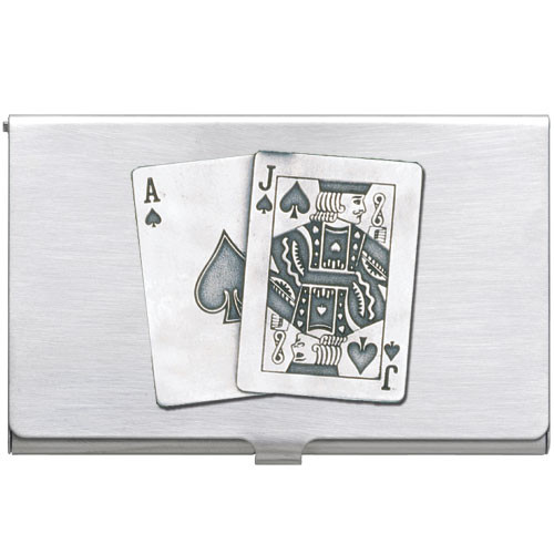 This business card case is constructed of stainless steel featuring a fine pewter decorative casting. The hinged case is perfect for carrying your cards in a neat and impressive manner. Assembled in USA.