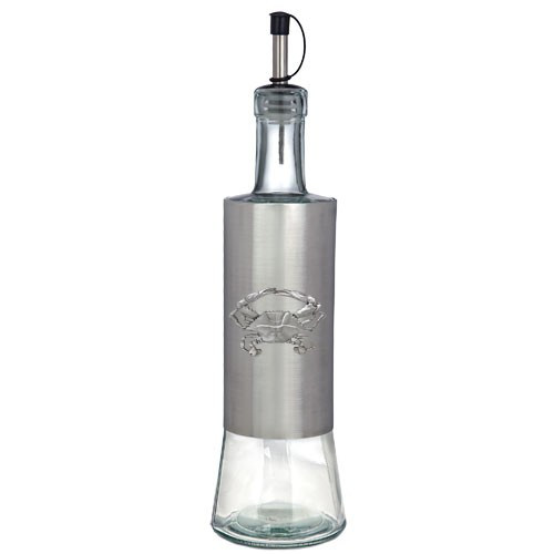 Dress up your table and kitchen with our stylish Stainless Steel Bottle with Pour Spout. Tall and elegant with easy-pour spouts. These stainless steel bottles are embellished with a finely crafted pewter logo. Handmade in the USA a perfect gift item! 20 oz. capacity *Suggested hand wash only