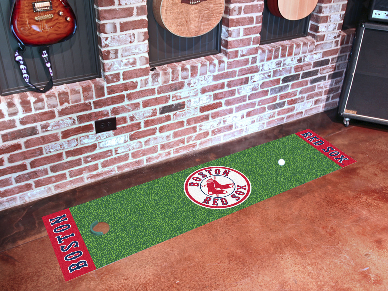 Officially licensed putting green runner. Realistic putting surface. 11 on the Stamp meter. Chromo jet-printed nylon surface with vinyl backing. Can be used as a runner when not practicing. Comes with plastic target and flag.