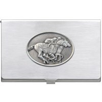 This business card case is constructed of stainless steel featuring a fine pewter decorative casting. The hinged case is perfect for carrying your cards in a neat and impressive manner. Assembled in USA.
