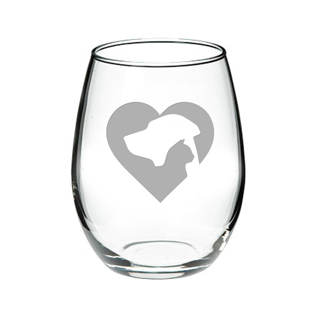 Cat Dog Heart Stemless White Wine Glass Set of 4