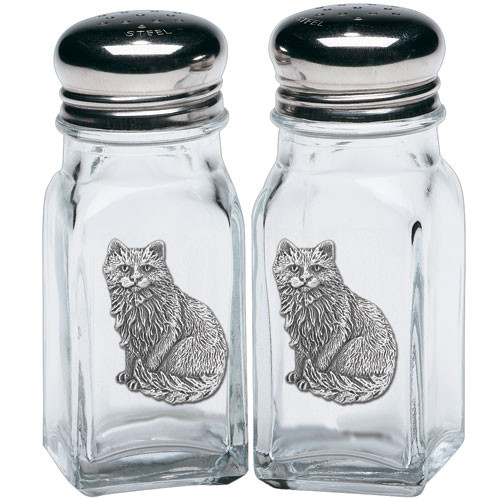 This is a set of salt & pepper shakers with a fine pewter logo medallion bonded to the side. Made in USA.
