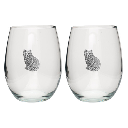 Cat Sitting Stemless Wine Glass (Set of 2)