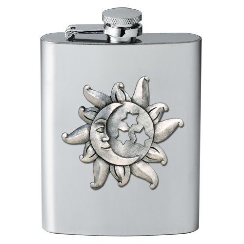This 8 ounce stainless steel celestial flask is embellished with a fine pewter casting. Assembled in USA.
