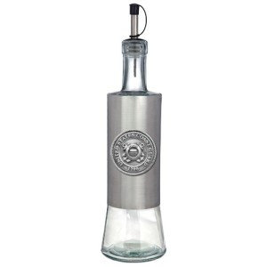 Dress up your table and kitchen with our stylish Stainless Steel Bottle with Pour Spout. Tall and elegant with easy-pour spouts. These stainless steel bottles are embellished with a finely crafted pewter logo. Handmade in the USA a perfect gift item! 20 oz. capacity *Suggested hand wash only