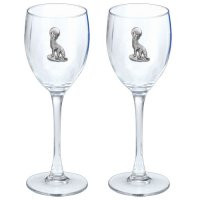 This is a set of two 12 ounce glass goblets with a fine pewter logo medallion bonded to the side. It could be used to serve water, wine or other beverages. Made in USA.