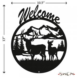 The Welcome Sign is constructed of 18 gauge metal, (Very Strong and Durable!!) Painted with a powder coat paint finish. Approx. dimensions 13 inches high by 10.5 inches wide. 2 small holes drilled into the hanger for easy mounting. This is a GREAT piece of Metal Art that will last for many years!!