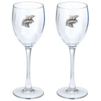 This is a set of two 12 ounce glass goblets with a fine pewter logo medallion bonded to the side. It could be used to serve water, wine or other beverages. Made in USA.