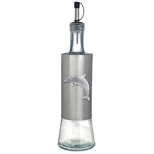 Dress up your table and kitchen with our stylish Stainless Steel Bottle with Pour Spout. Tall and elegant with easy-pour spouts. These stainless steel bottles are embellished with a finely crafted pewter logo. Handmade in the USA a perfect gift item! 20 oz. capacity *Suggested hand wash only