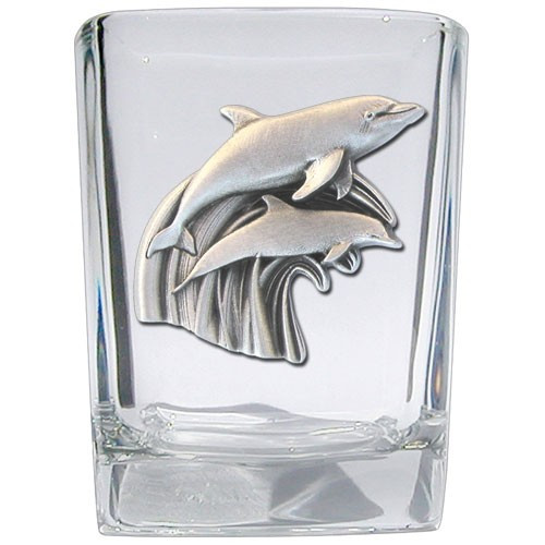 This 1.5 ounce square Shot Glass (Set of 2) is highlighted with a fine pewter dolphin casting. Made in USA.