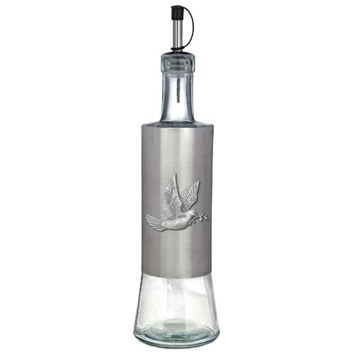 Dress up your table and kitchen with our stylish Stainless Steel Bottle with Pour Spout. Tall and elegant with easy-pour spouts. These stainless steel bottles are embellished with a finely crafted pewter logo. Handmade in the USA a perfect gift item! 20 oz. capacity *Suggested hand wash only
