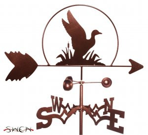 This is a real working weathervane. They are all made with pride by a small family business located in the US. The weathervane is made of a strong 16 gauge steel. The top of the weathervane pivots on a strong stainless steel pin. The wind-cups have a sealed ball bearing that will spin with the slightest breeze. The entire weathervane is covered with copper vein colored powder coat paint. Baked on Paint.