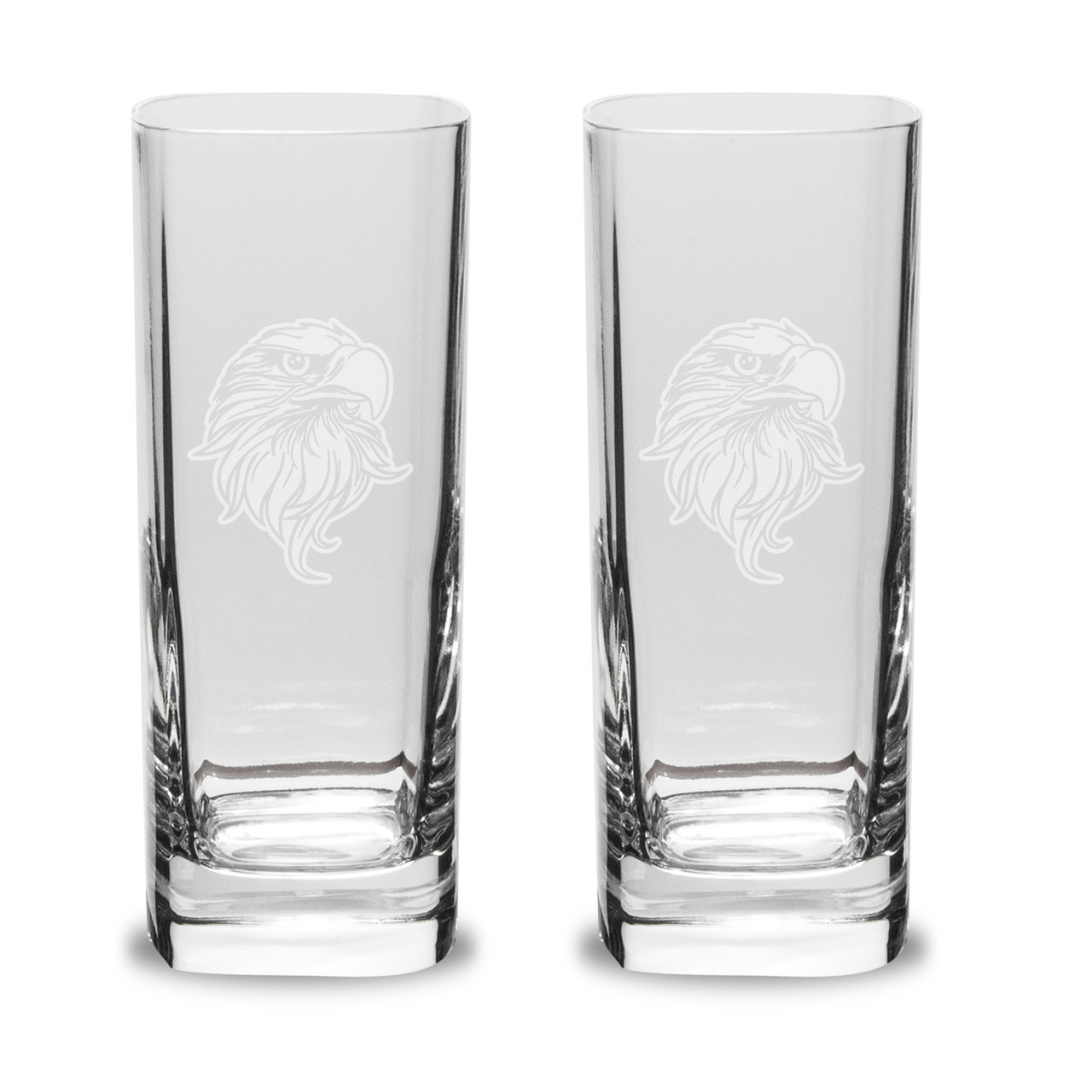 Eagles Head Deep Etched Luigi Bormioli 13.50 oz Square Round Highball Glass - Set of 2