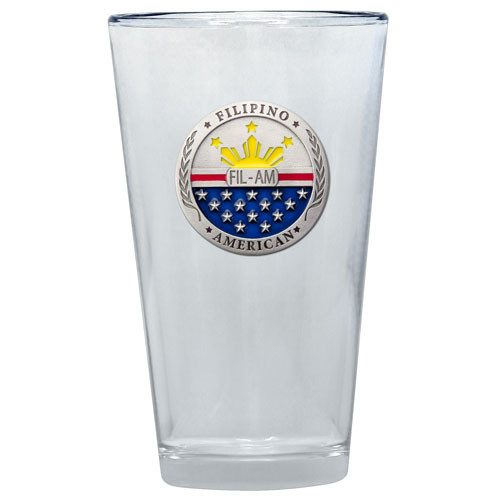 This 16 ounce pint glass is the ultimate vessel for your favorite beverage. It is exquisitely detailed with a fine pewter casting. The pewter logo is embellished with an epoxy enamel blue, red, and yellow. Made in USA.