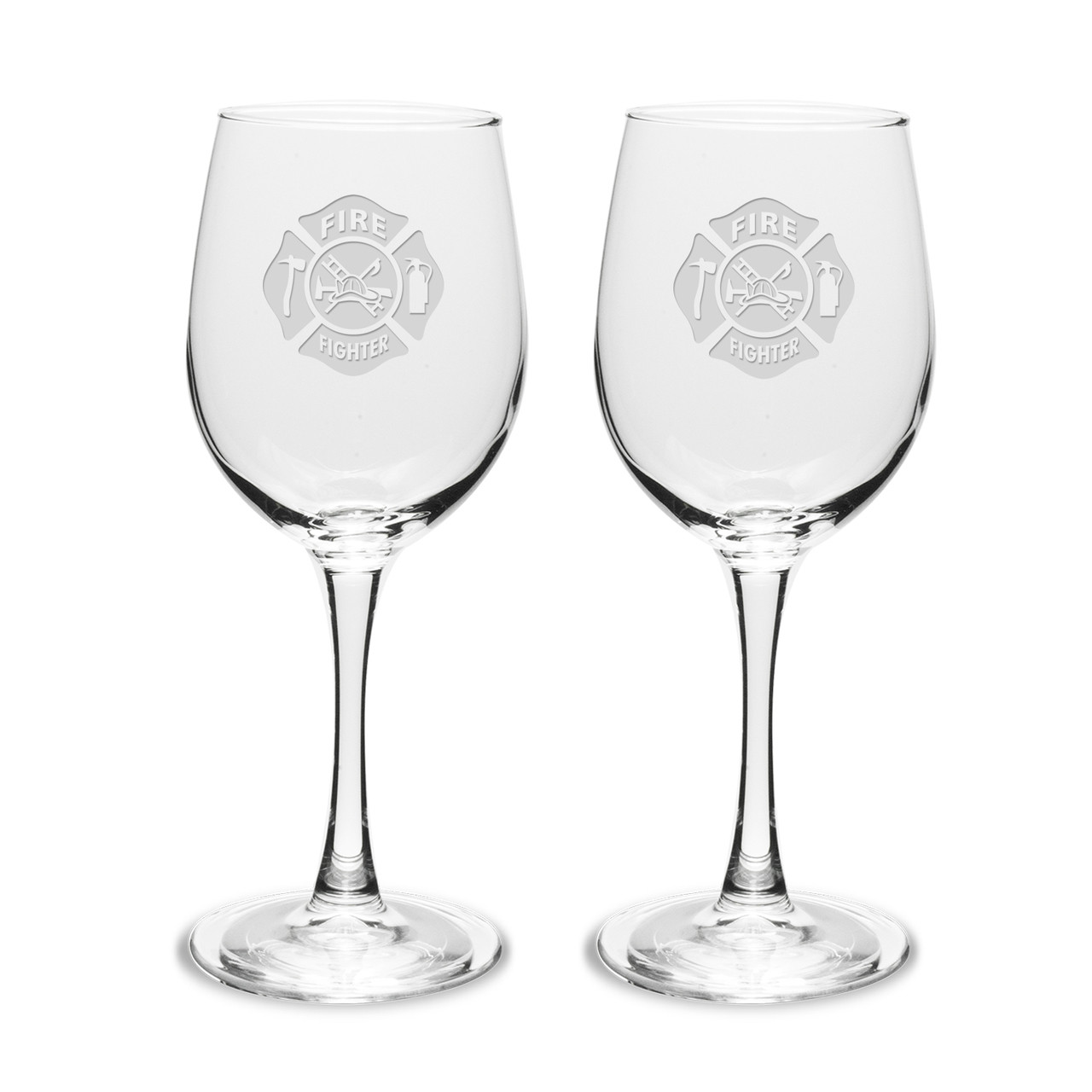 Firefighter 12 oz Classic White Wine Glass - Set of 2 This sophisticated product line uses a deep etch process which provides the most beautiful and enduring decorated glass gifts available today. Designed to be used with limited breakage on a daily basis, dishwasher safe. Made in the USA