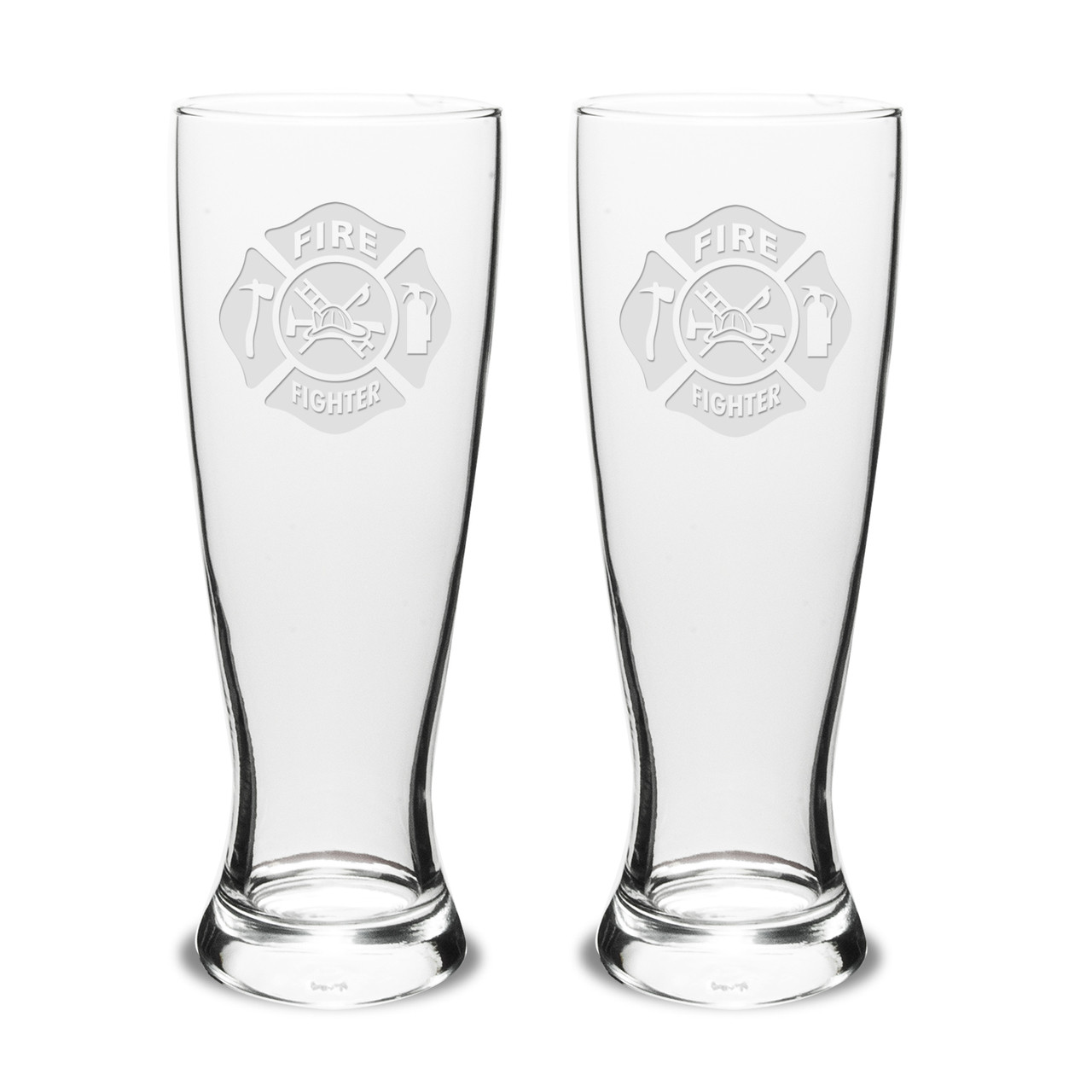 Firefighter 23 oz University Beer Pilsner - Set of 2 This sophisticated product line uses a deep etch process which provides the most beautiful and enduring decorated glass gifts available today. Designed to be used with limited breakage on a daily basis, dishwasher safe. Made in the USA