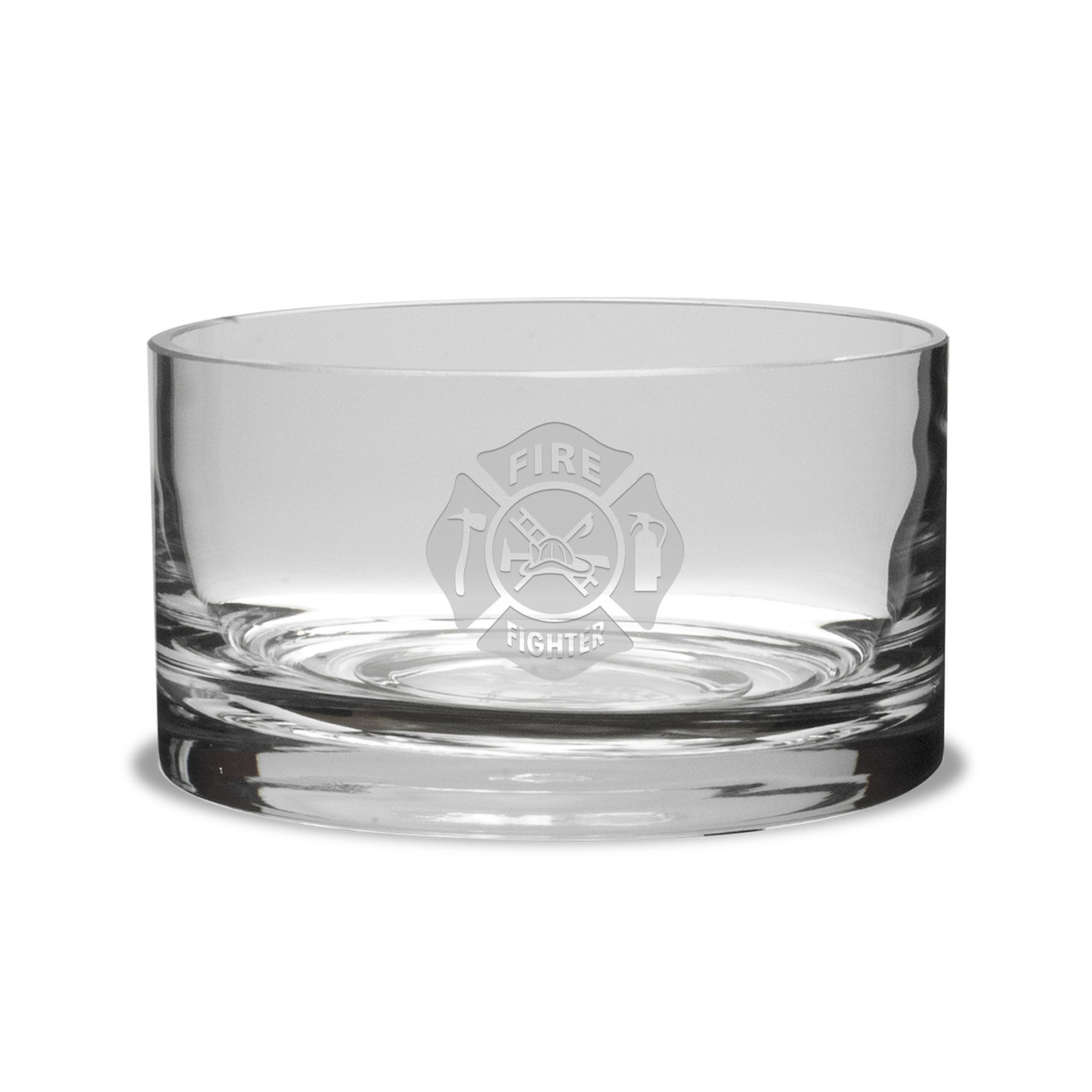 Firefighter Petite Candy Bowl This sophisticated product line uses a deep etch process which provides the most beautiful and enduring decorated glass gifts available today. Designed to be used with limited breakage on a daily basis, dishwasher safe. Made in the USA