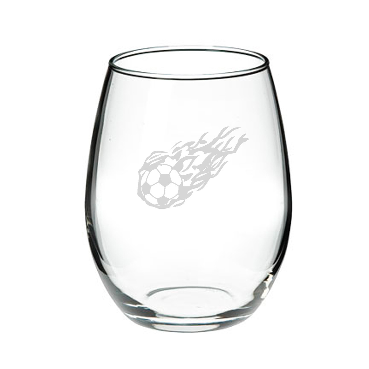 Flaming Soccer Ball 21 oz. Deep Etched Stemless Wine Glass