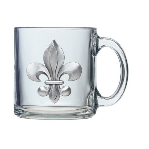 This 13 ounce glass Coffee Mug (Set of 2) is decorated with a fine pewter casting. It is microwaveable and dishwasher safe.