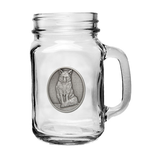 This 22 ounce glass mason jar mug features a fine pewter casting. The details in this 3-d sculpted design are incredible! Made in USA.