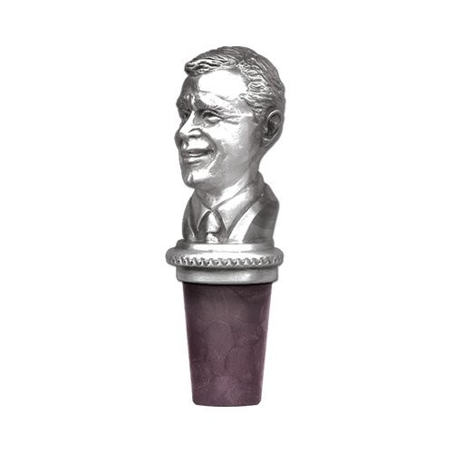 This George W. Bush bottle stopper is cast in solid fine pewter. The synthetic cork will not stain or crack. It comes equipped with a chain attached to a ring which goes around the bottle's neck. Made in USA.