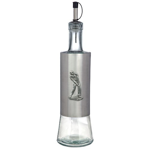 Dress up your table and kitchen with our stylish Stainless Steel Bottle with Pour Spout. Tall and elegant with easy-pour spouts. These stainless steel bottles are embellished with a finely crafted pewter logo. Handmade in the USA a perfect gift item! 20 oz. capacity *Suggested hand wash only