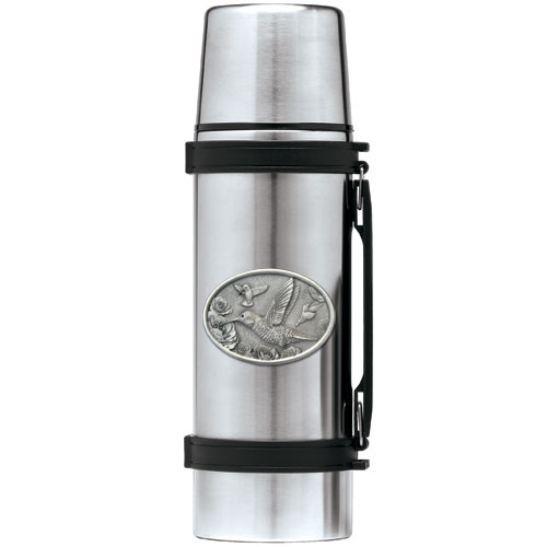This 1 liter stainless steel thermos features a fine pewter casting. The details in this 3-d sculpted design are incredible! Made in USA.