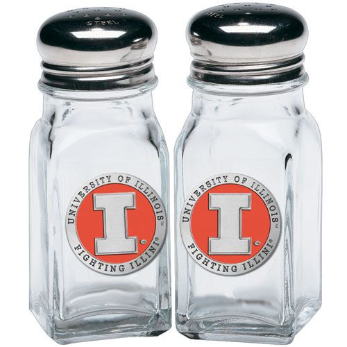 This high quality Illinois Fighting Illini Salt and Pepper Shaker Set is officially licensed and features a colored pewter logo of your favorite team. This unique product makes a great gift! Made in the USA.