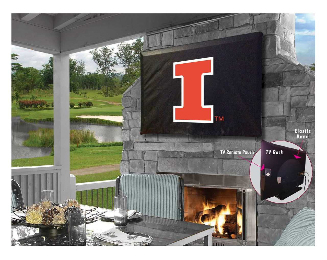This Illinois TV Cover is hand-made in the USA using the finest commercial grade vinyl and utilizing a step-by-step screen print process to give you the most detailed logo possible. UV resistant inks are used to ensure exceptional durability to direct sun exposure. Spandex-like material wraps around the back of the TV, keeping moisture out while allowing heat out and helping to prevent overheating. Back opening allows a fit on any wall mount, and bungee allows cover to be cinched down securely. Cover also contains a pocket for remote control storage. This product is Officially Licensed, so you can show your pride while protecting your TV from the elements of nature. Keep your TV protected and support your team with the help of Covers ! Fits TV sizes 60" to 65".