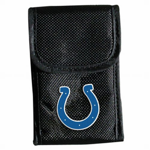 A protective iPod/MP3 player/digital camera case with pocket for I.D. or other cards. This Indianapolis Colts iPod/MP3 Holder has an opening for headphones so you can use it while mp3 player is in the case. This case attaches to your belt or can Velcro around almost anything for easy use and offers product protection during travel. Embroidered team logo. Black.