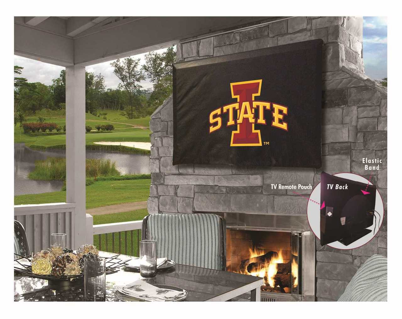 This Iowa State TV Cover is hand-made in the USA using the finest commercial grade vinyl and utilizing a step-by-step screen print process to give you the most detailed logo possible. UV resistant inks are used to ensure exceptional durability to direct sun exposure. Spandex-like material wraps around the back of the TV, keeping moisture out while allowing heat out and helping to prevent overheating. Back opening allows a fit on any wall mount, and bungee allows cover to be cinched down securely. Cover also contains a pocket for remote control storage. This product is Officially Licensed, so you can show your pride while protecting your TV from the elements of nature. Keep your TV protected and support your team with the help of Covers ! Fits TV sizes 60" to 65".