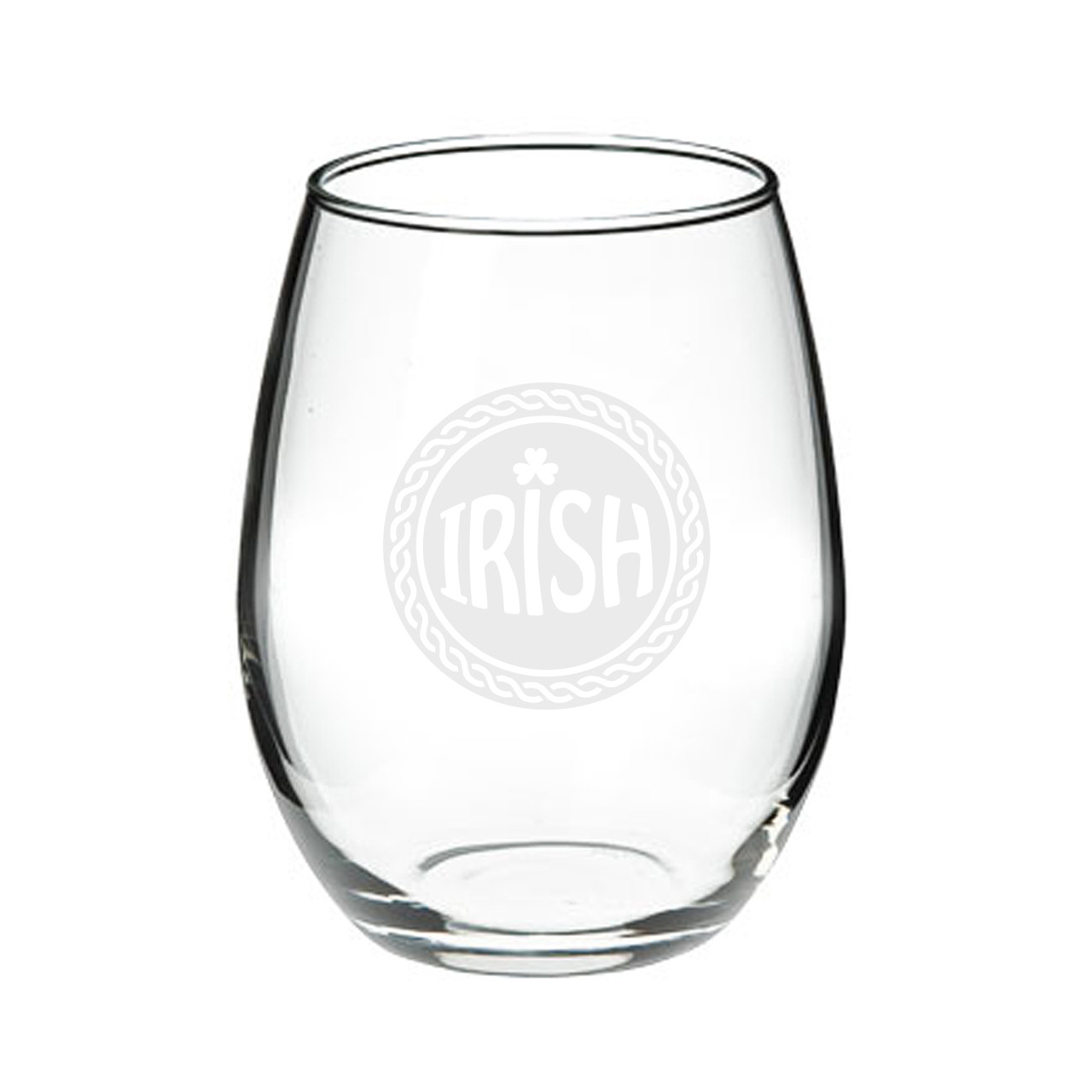 Irish Celtic Logo Deep Etched 21 oz Stemless Red Wine Glass