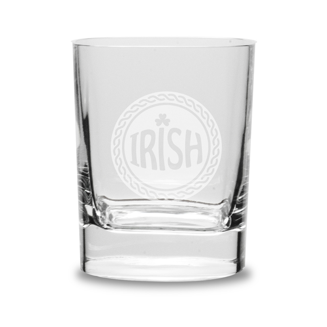 Irish Celtic Logo Deep Etched Luigi Bormioli 11.75 oz Square Round Double Old Fashion Glass
