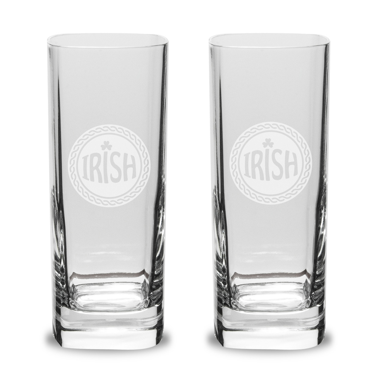Irish Celtic Logo Deep Etched Luigi Bormioli 13.50 oz Square Round Highball Glass - Set of 2