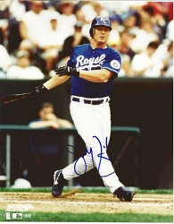 Jeremy Giambi Kansas City Royals Autographed 8x10 Photo #2. This is a licensed 8x10 photo. This photo is made on high quality photographic paper and is not a reprint. It will ship in a hard top loader plastic