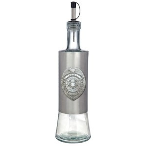 Dress up your table and kitchen with our stylish Stainless Steel Bottle with Pour Spout. Tall and elegant with easy-pour spouts. These stainless steel bottles are embellished with a finely crafted pewter logo. Handmade in the USA a perfect gift item! 20 oz. capacity *Suggested hand wash only