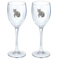 This is a set of two 12 ounce glass goblets with a fine pewter logo medallion bonded to the side. It could be used to serve water, wine or other beverages. Made in USA.