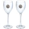 This is a set of two 12 ounce glass goblets with a fine pewter logo medallion bonded to the side. It could be used to serve water, wine or other beverages. Made in USA.
