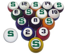 Our officially licensed billiard ball sets areámade from high quality resin and are official size and weight which meet the stringent standards of the Billiard Congress of America .áááá Unlike other screen printed and coated ball sets, this billiard ball set is imprinted with your team logo through a high technology heat transfer dye process with the image being permanently "embedded" so it will not crack, chip, split or peel during play.áááá