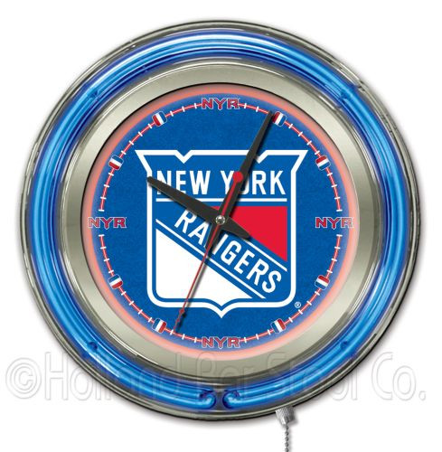 This New York Rangers Neon Clock is a perfect way to show your team pride. Chrome casing and a team specific neon ring accent a custom printed clock face, lit up by an brilliant white, inner neon ring.