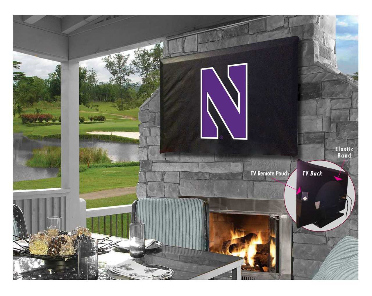 This Northwestern TV Cover is hand-made in the USA using the finest commercial grade vinyl and utilizing a step-by-step screen print process to give you the most detailed logo possible. UV resistant inks are used to ensure exceptional durability to direct sun exposure. Spandex-like material wraps around the back of the TV, keeping moisture out while allowing heat out and helping to prevent overheating. Back opening allows a fit on any wall mount, and bungee allows cover to be cinched down securely. Cover also contains a pocket for remote control storage. This product is Officially Licensed, so you can show your pride while protecting your TV from the elements of nature. Keep your TV protected and support your team with the help of Covers ! Fits TV sizes 40" to 46".
