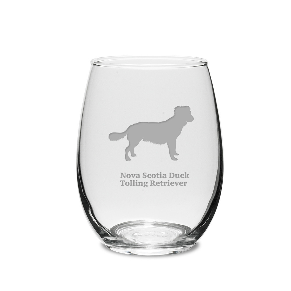 Click the button below to add the Nova Scotia Duck Tolling Retriever Deep Etched 15 oz Stemless White Wine Glass to your wish list.