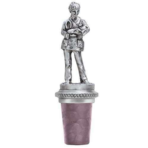 This bottle stopper is cast in solid fine pewter. The synthetic cork will not stain or crack. It comes equipped with a chain attached to a ring which goes around the bottle's neck. Made in USA.