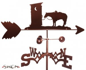 This is a real working weathervane. They are all made with pride by a small family business located in the US. The weathervane is made of a strong 16 gauge steel. The top of the weathervane pivots on a strong stainless steel pin. The wind-cups have a sealed ball bearing that will spin with the slightest breeze. The entire weathervane is covered with copper vein colored powder coat paint. Baked on Paint.