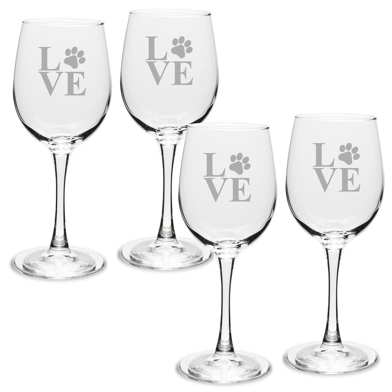 Paw Print LOVE Deep Etched White Wine Glass Set 4