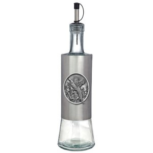 Dress up your table and kitchen with our stylish Stainless Steel Bottle with Pour Spout. Tall and elegant with easy-pour spouts. These stainless steel bottles are embellished with a finely crafted pewter logo. Handmade in the USA a perfect gift item! 20 oz. capacity *Suggested hand wash only