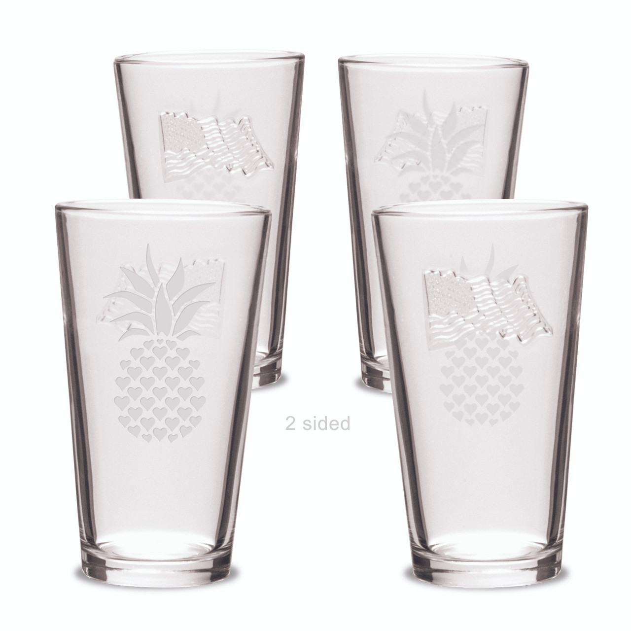 Pineapple 16 oz Crystal American Flag Glass - Set of 2